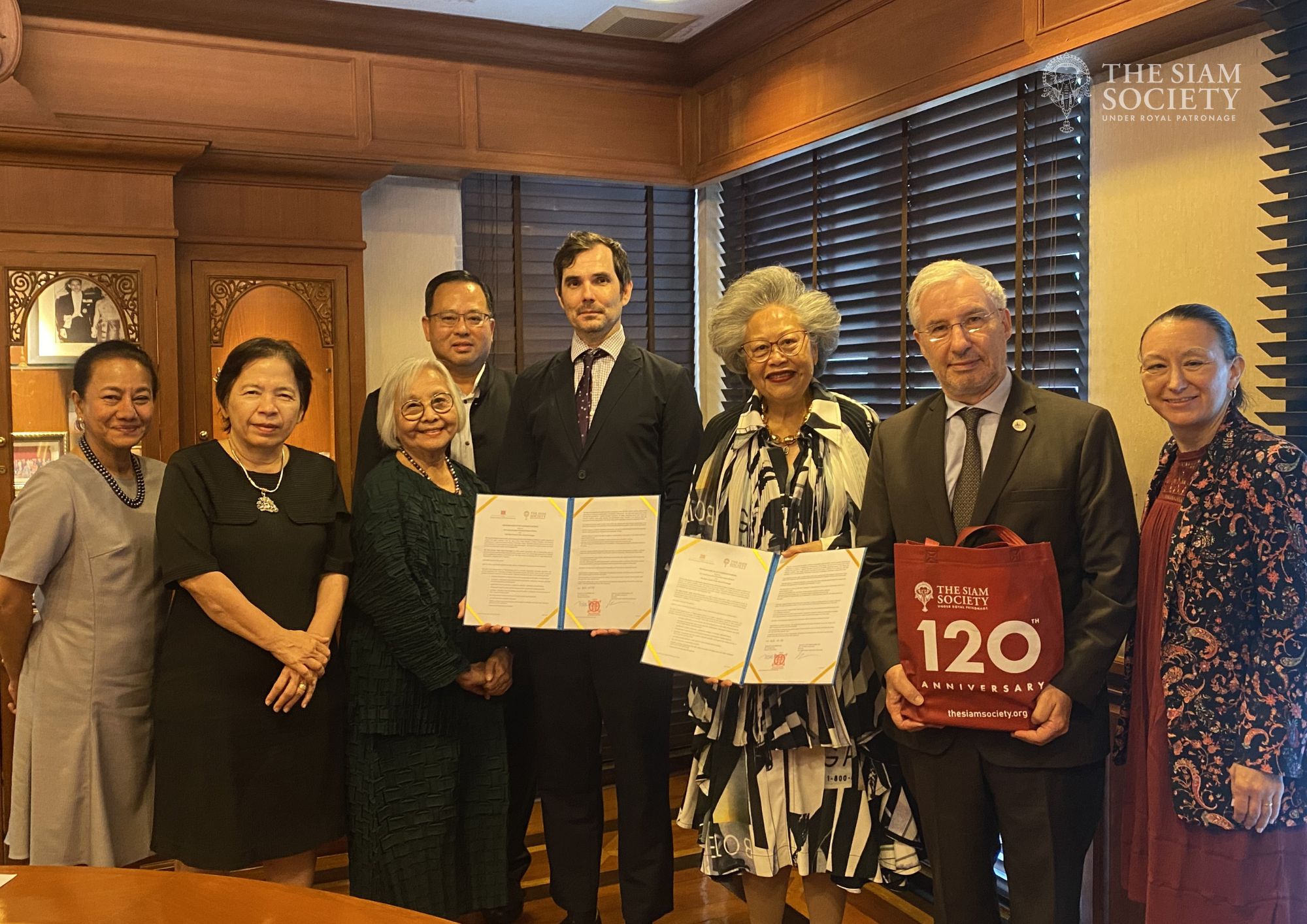 The ceremony was graciously witnessed by H.E. Mr Jean-Claude Poimboeuf, Ambassador of France to Thailand, with Assoc. Prof. Dr Gregory Kourilsky, Head of the EFEO Center in Bangkok, representing EFEO at the ceremony, and was also attended by members of The Siam Society’s Council. This collaboration reflects a shared commitment to the exchange and advancement of knowledge, fostering scholarly dialogue, and the preservation and promotion of cultural heritage across the region and beyond.