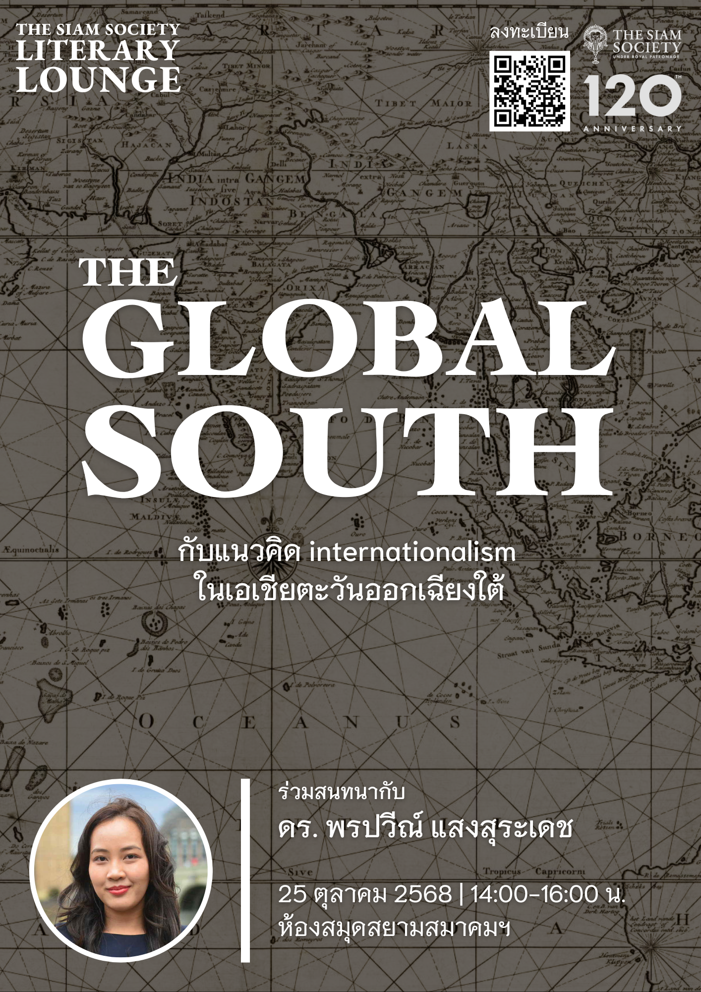 ห้องสมุดสยามสมาคมฯ มีกำหนดจัดกิจกรรม The Siam Society Literary Lounge เรื่อง “The Global South กับแนวคิด internationalism ในเอเชียตะวันออกเฉียงใต้” ในวันเสาร์ที่ 25 ตุลาคม 2568 เวลา 14.00 – 16.00 น.